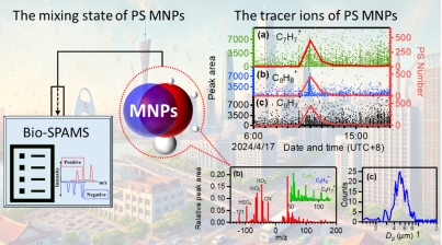 与传统的滤膜采样—离线分析方法相比,该方法显著提高了检测的时空分辨率和响应速度,为揭示MNPs在大气中的输送、转化与老化过程提供了全新的技术手段。在实际观测中,该方法成功应用于城市大气样品的实时监测,并发现PS MNPs与硝酸盐、硫酸盐等无机污染物高度共存,表明MNPs可能作为多污染物复合体系的重要载体,影响气溶胶的光学特性和反应活性。这一技术的建立为未来大气微纳米塑料的实时监测、溯源分析以及环境风险评估提供了重要科学支撑,也为探索新型污染物在气候与健康效应中的作用机制奠定了方法学基础。
