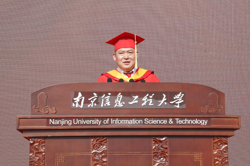 “人类社会正经历百年未有之大变局”,李北群说,在逆全球化和技术变革的冲击下,我们正踏入更加具有多变性、不确定性和复杂性的时代。因此,他希望毕业生要做一名“有韧性”的南信大人。一是要心系天下,仰望星空、脚踏实地、循步前行;二是要坚忍不拔,直面挑战、坚毅执着、百折不回;三是要追求卓越,终身学习、反躬自省、锐意创新;四是要胸襟坦荡,热爱生活、敬业乐群、将顺其美。“只要每天进步一点点,一年一定进步很多!”他希望毕业生们常回家看看,母校永远是大家最坚强的后盾;也希望大家智者不惑、仁者不忧、勇者不惧,早日成长为实现中华民族伟大复兴中国梦的时代栋梁!