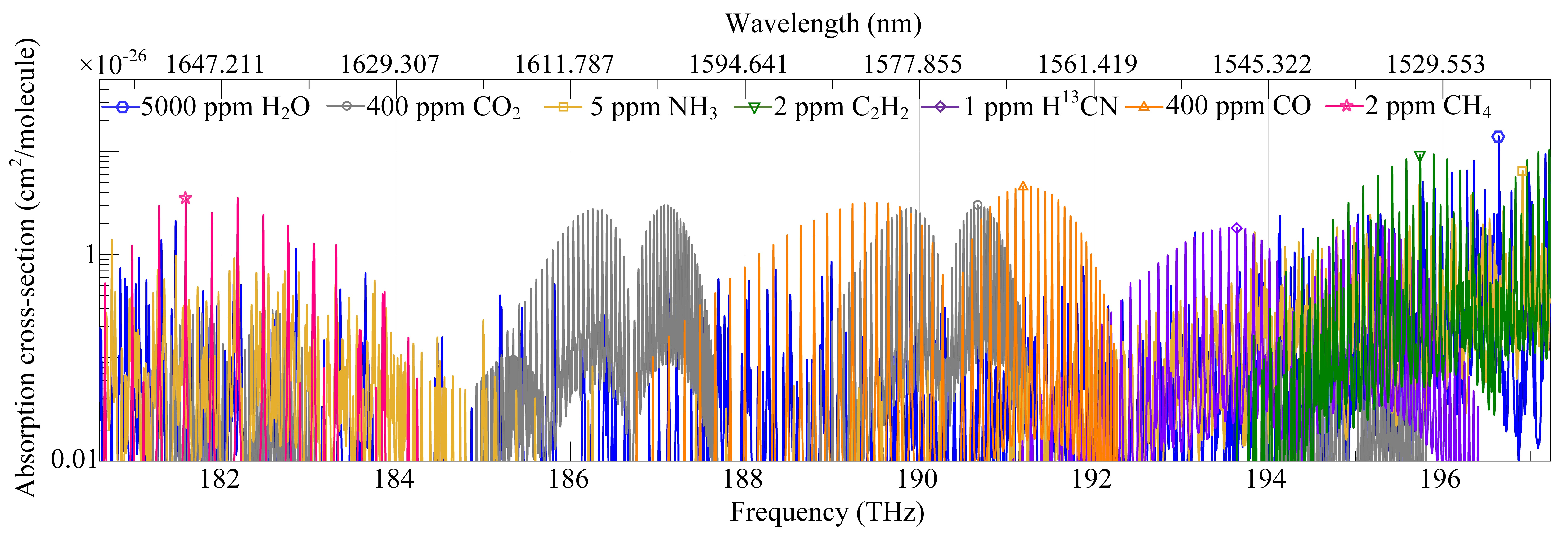 图1 例举7种气体吸收截面