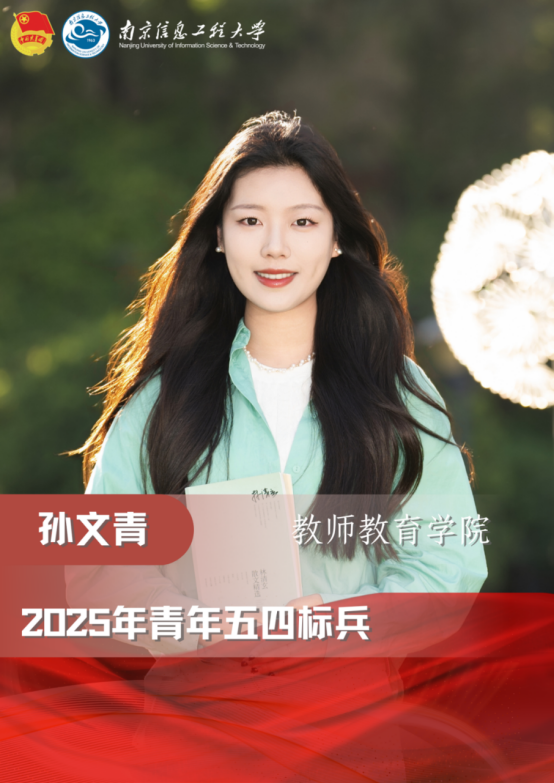 孙文青,中共党员,21级英语(师范)4班团支书。她学习成绩优异,综合素质突出,连续两年综测位列专业第一,现已保研南京师范大学学科教学(英语)专业。在校期间曾获国家奖学金、校长奖学金、两次荣获全国大学生英语竞赛B类二等奖(3%)等各级各类荣誉奖项40余项。参与一项国家级大创项目,并以独立作者授权软著一项。淬炼教学基本功,她荣获第十三届江苏省师范生教学基本功大赛一等奖和第六届长三角师范生教学基本功大赛二等奖,以实习研习双优的成绩获评“优秀实习生”。从课堂到田野,她用知识点亮乡村孩子的未来。投身乡村支教,覆盖近200名学生,志愿者时长累计超200个小时,相关成果被中青校园等国家级媒体公开报道,赋能乡村教育发展。
